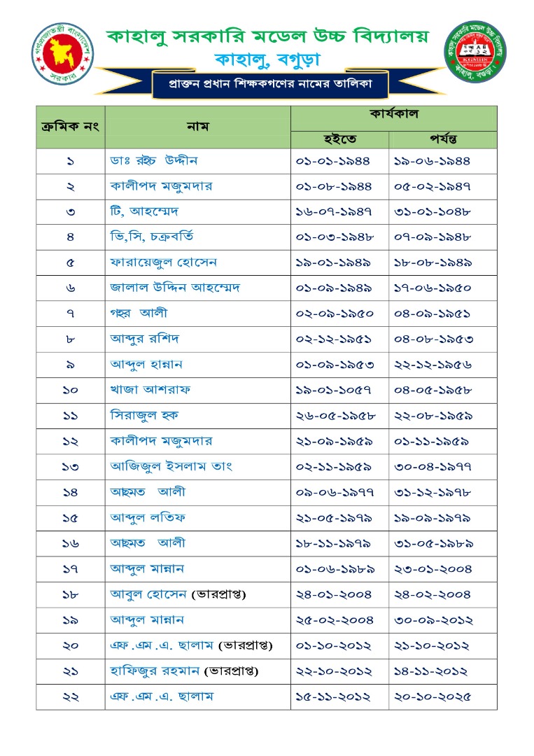 প্রাক্তন প্রধান শিক্ষকগণের নামের তালিকা